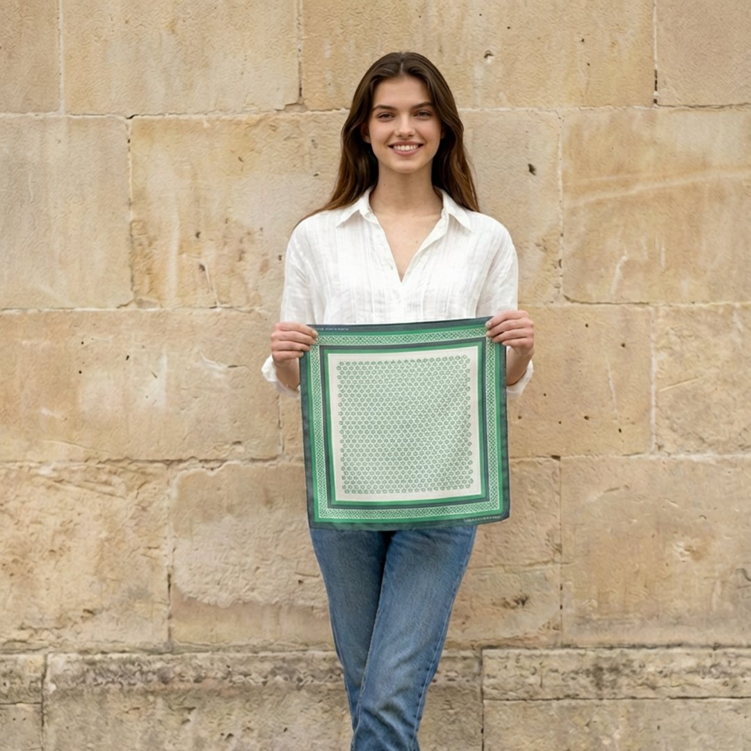 JDF Monogram Green Dynasty Silky Scarf (45cm)