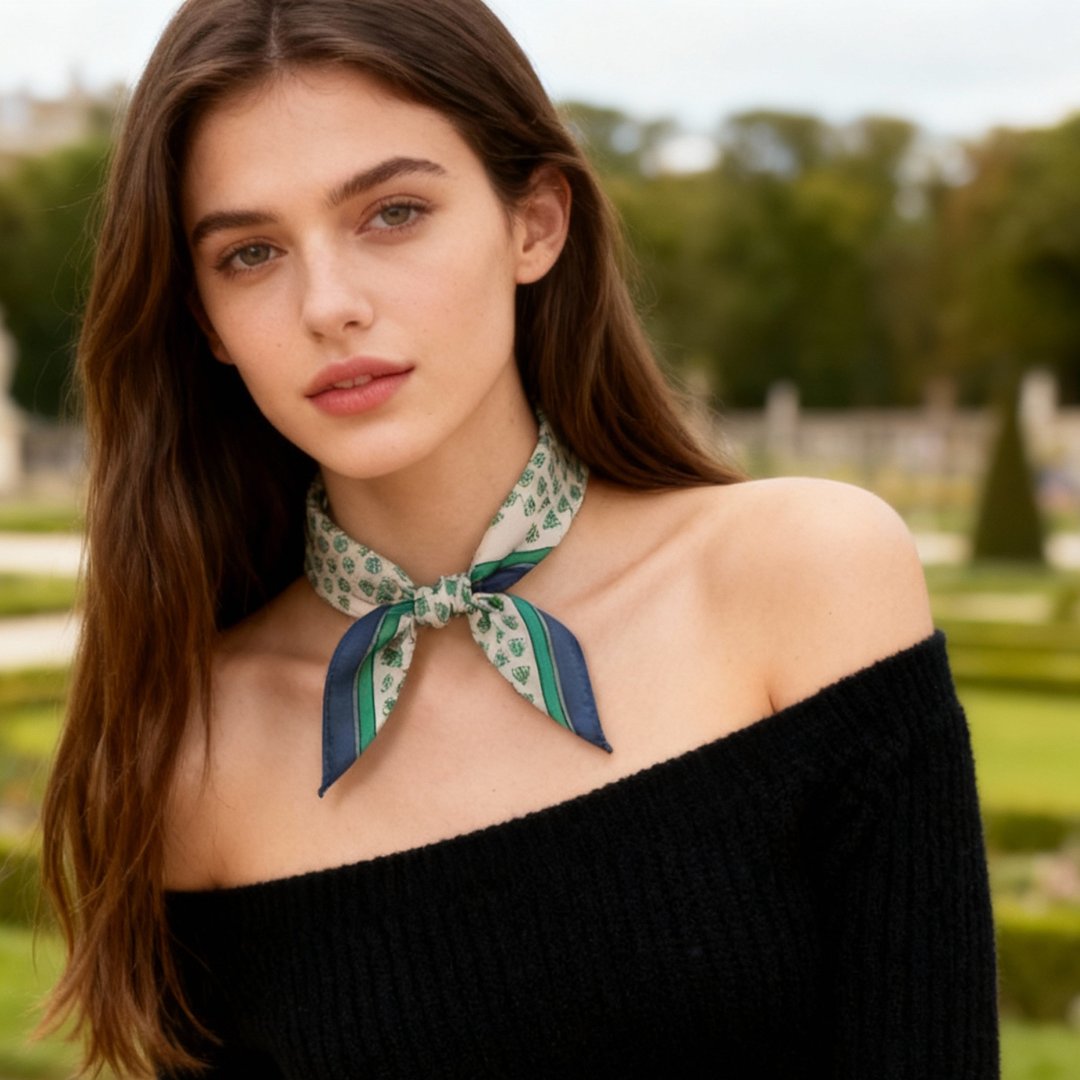 • Multi-style versatility: neck scarf, headscarf, hair tie, bag accessory