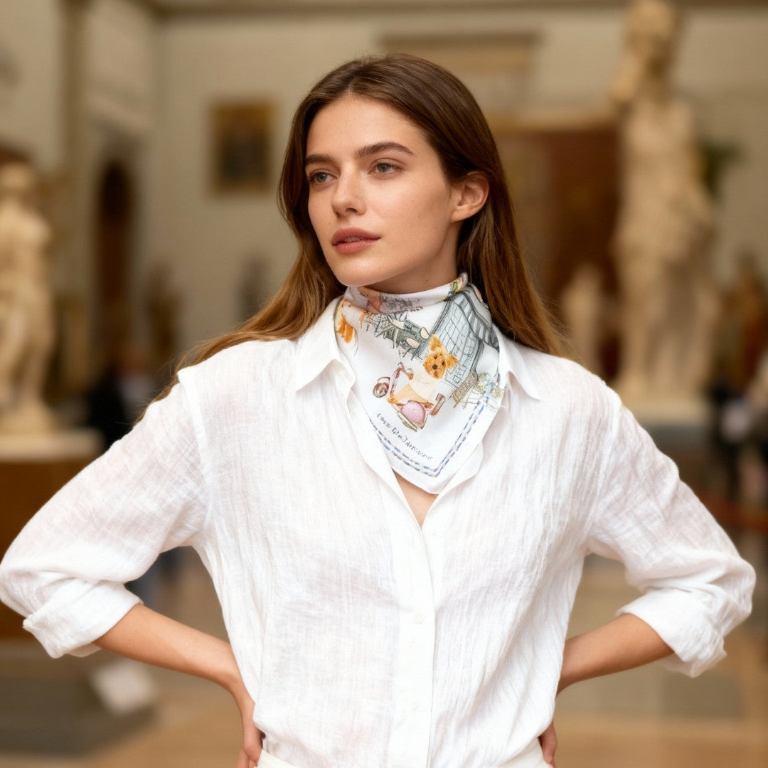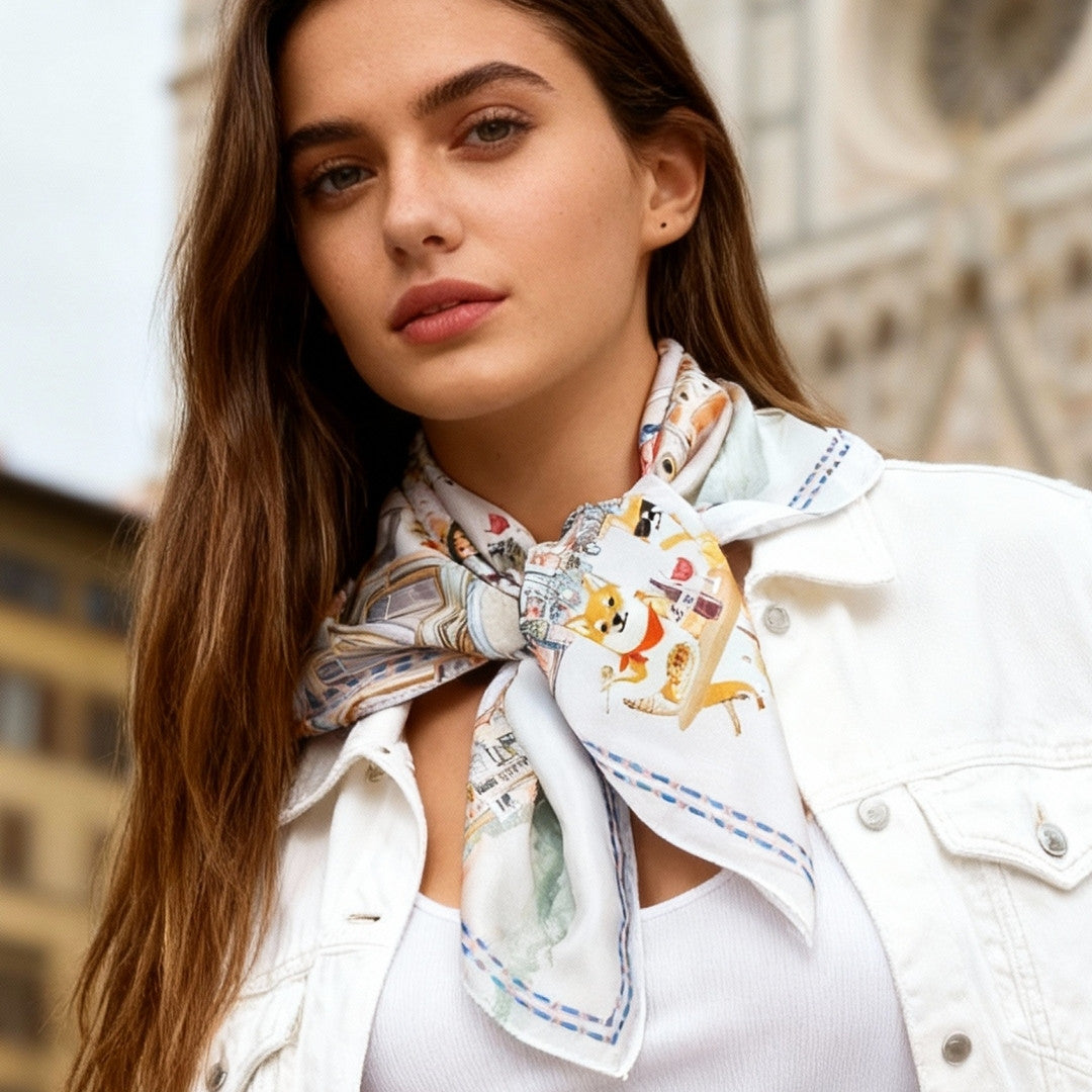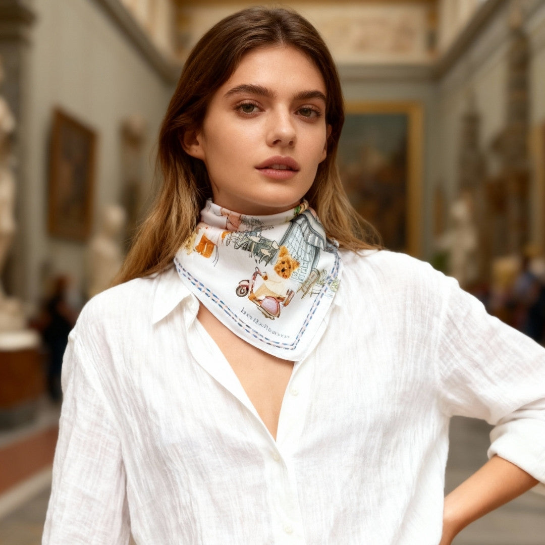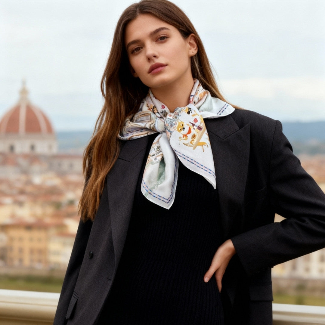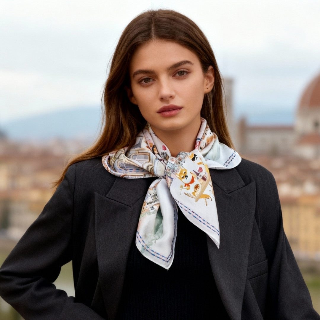 • An original design from Hong Kong, this fashion scarf celebrates the beauty of cities worldwide — inspired by their cultural heritage, iconic architecture, and local flora.