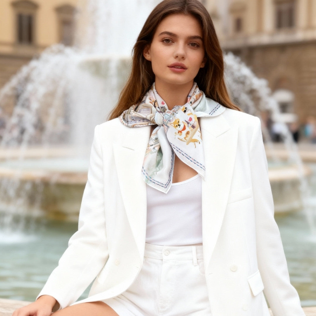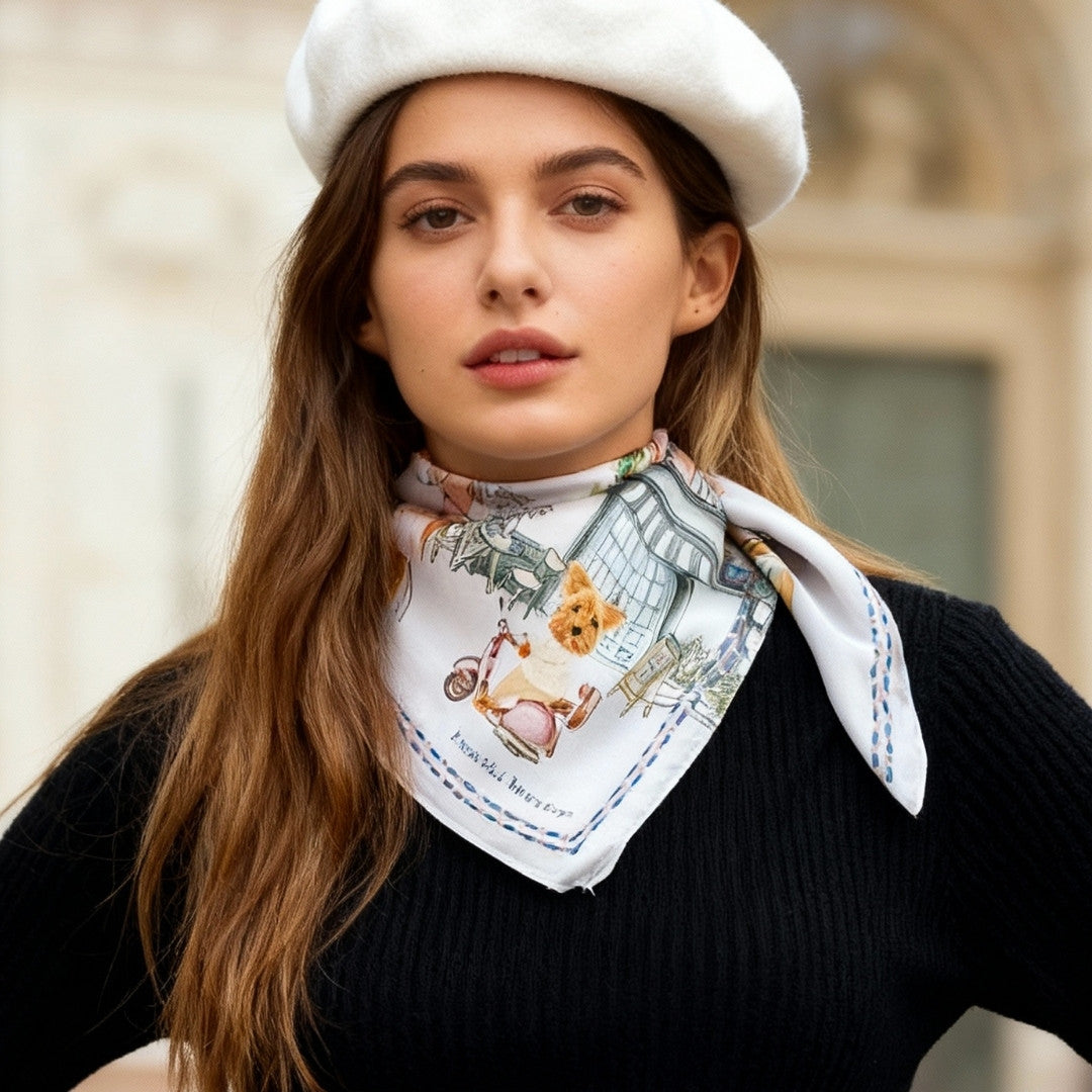 • Multi-style versatility: neck scarf, headscarf, hair tie, bag accessory