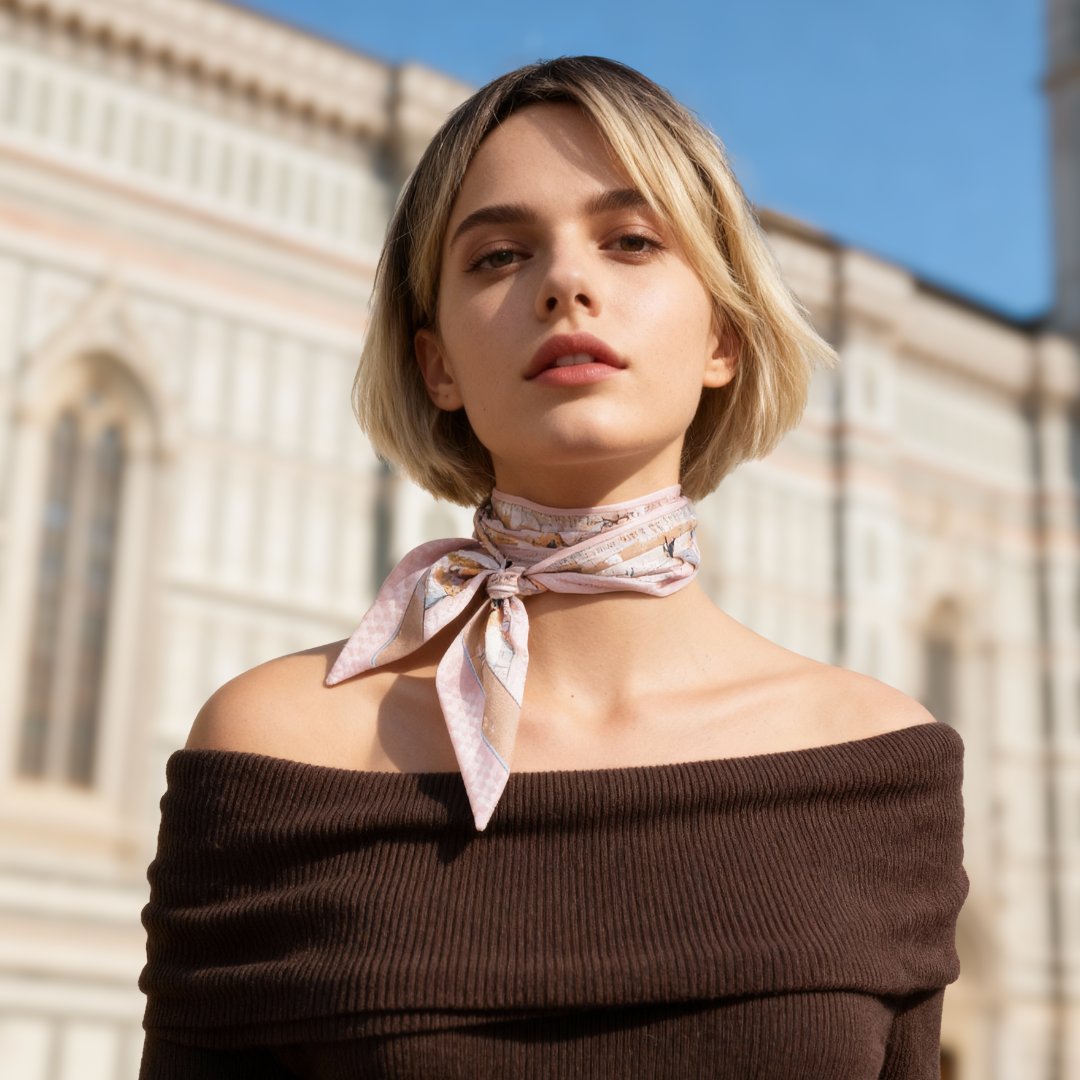 • Multi-style versatility: neck scarf, headscarf, hair tie, bag accessory
