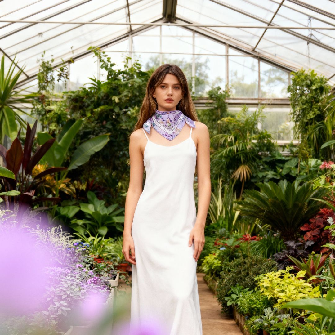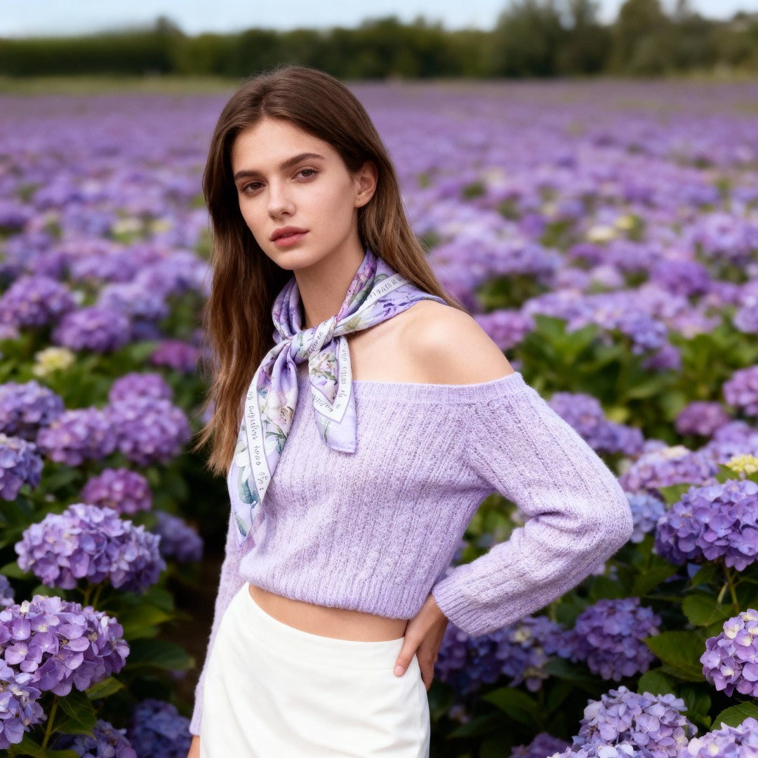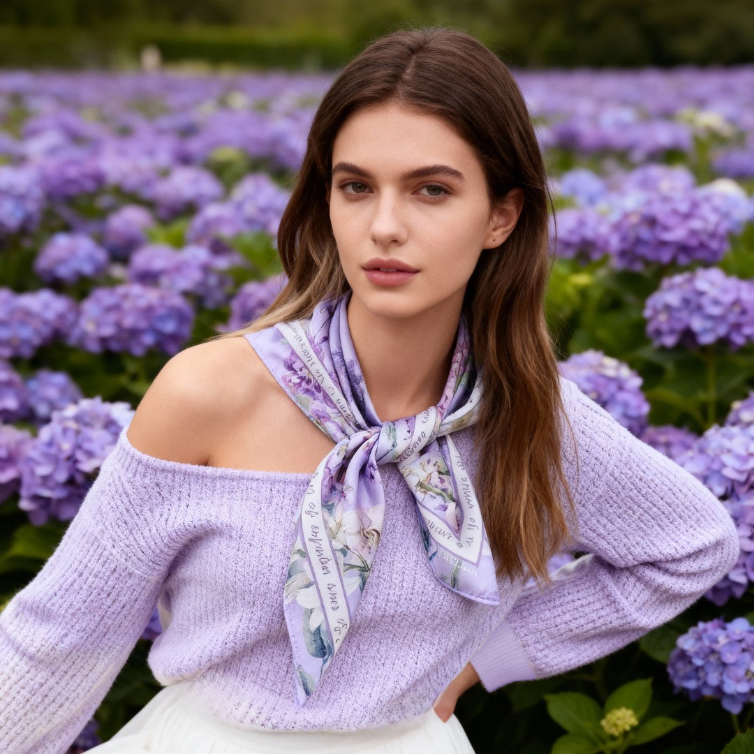 Secret Violet Garden Eustoma Silky Scarf (60cm)