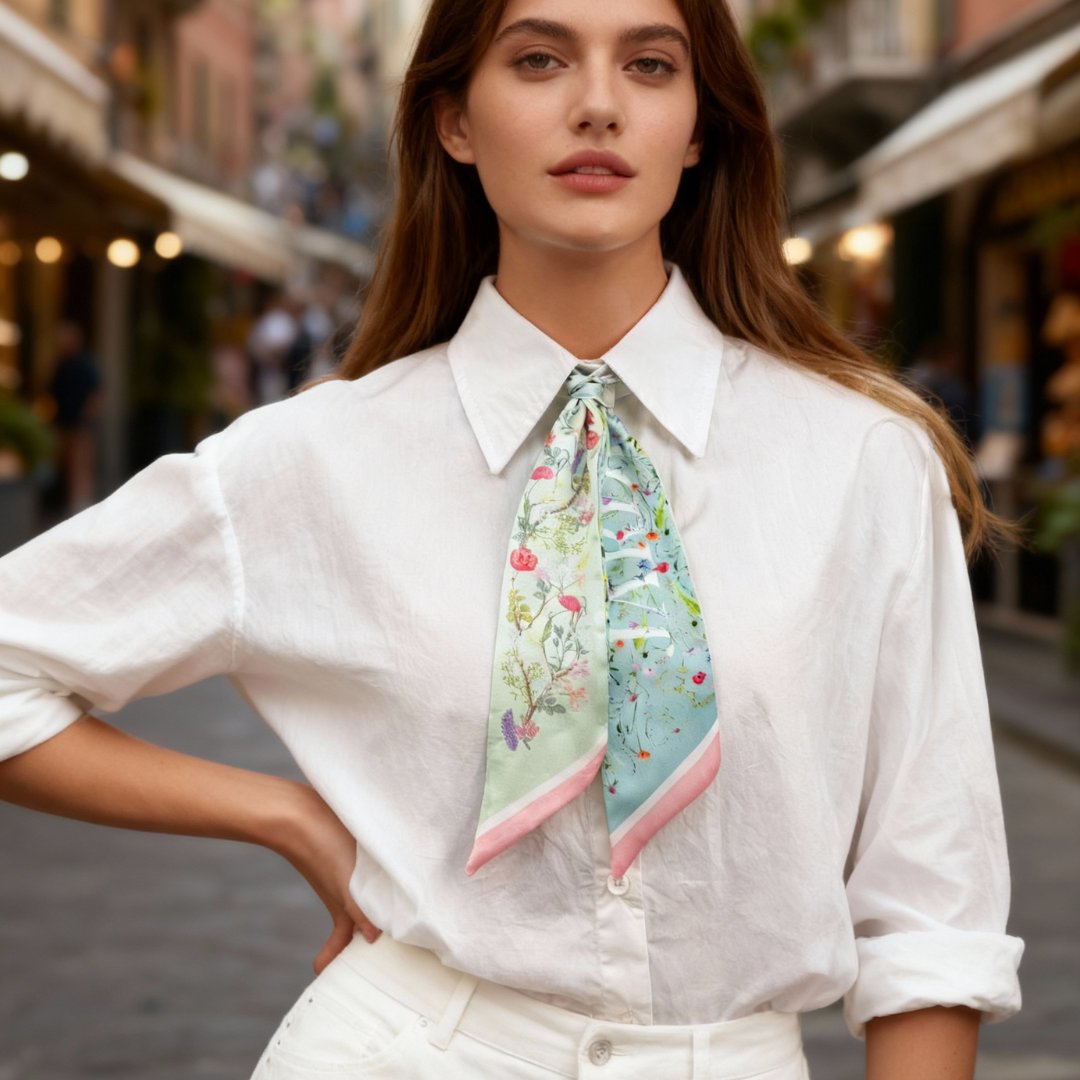 • Multi-style versatility: neck scarf, headscarf, hair tie, bag accessory