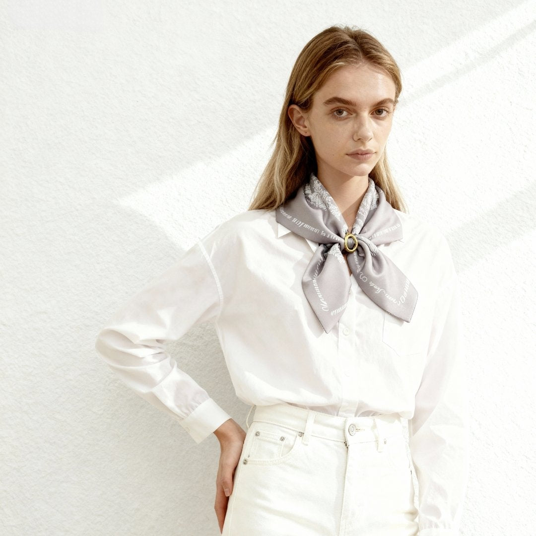 Toile De Jouy Pinkish Gray Silky Scarf Gift Set (Double Face Silky Scarf and Scarf Ring)