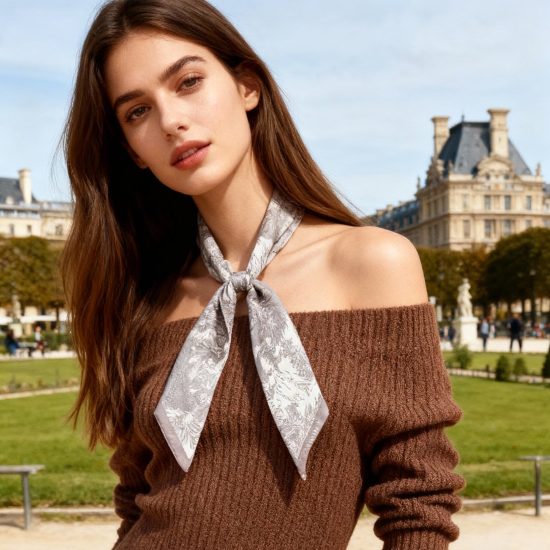 • Multi-style versatility: neck scarf, headscarf, hair tie, bag accessory