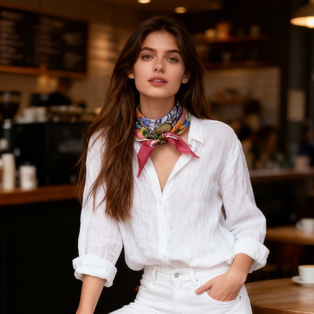 • Multi-style versatility: neck scarf, headscarf, hair tie, bag accessory