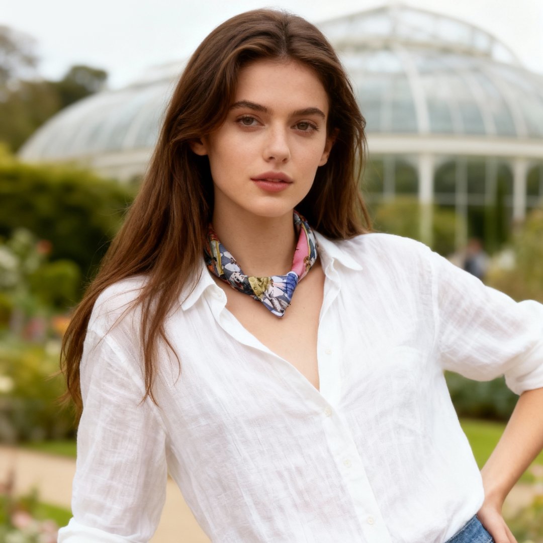 • Multi-style versatility: neck scarf, headscarf, hair tie, bag accessory