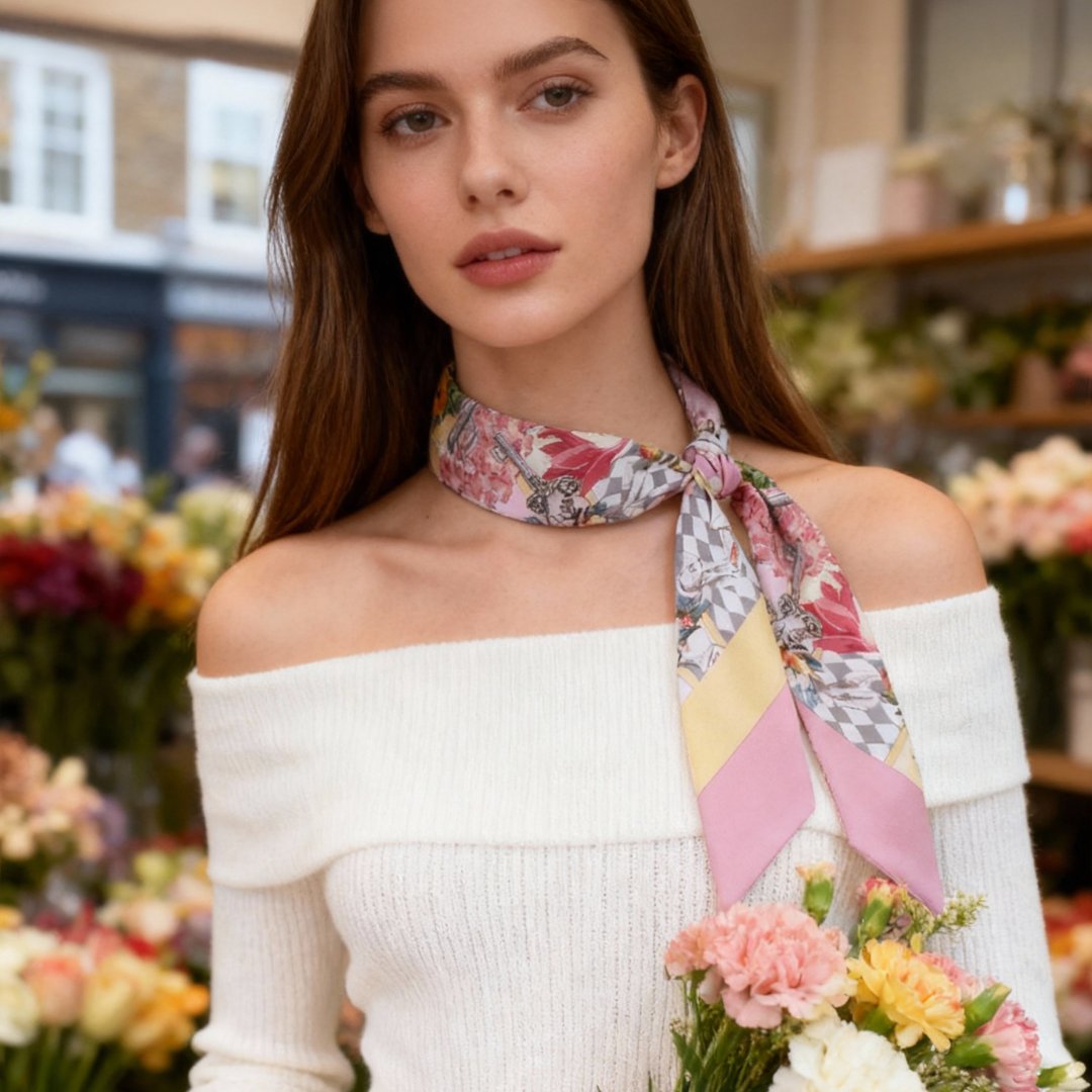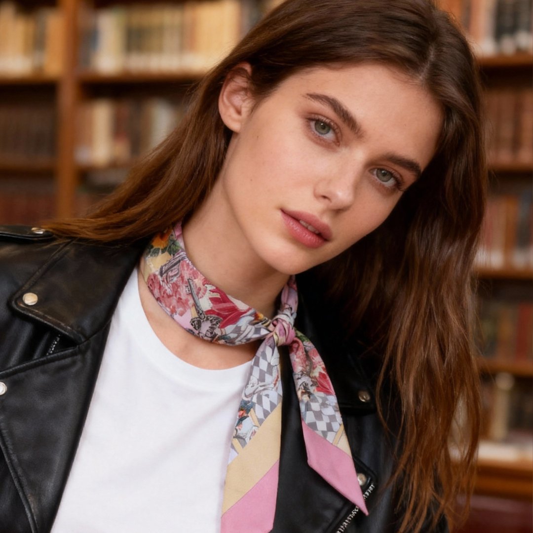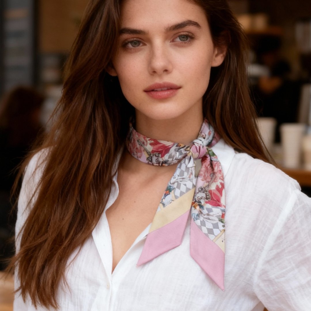 • Multi-style versatility: neck scarf, headscarf, hair tie, bag accessory