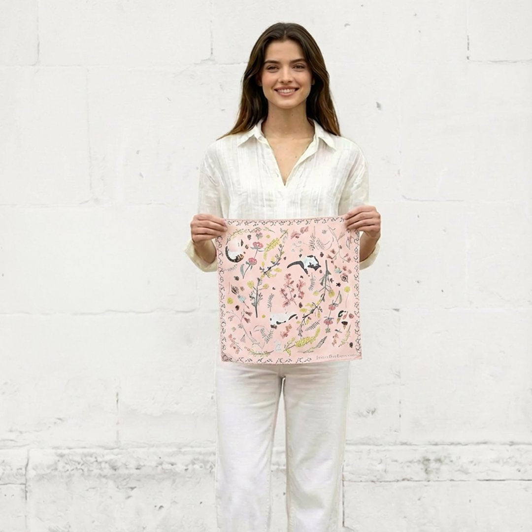 Yogis Cat and Flower Pink Field Silky Scarf (45cm)