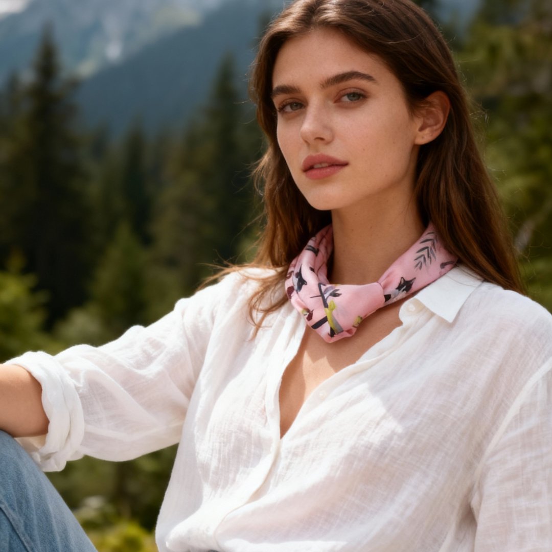 • Multi-style versatility: neck scarf, headscarf, hair tie, bag accessory