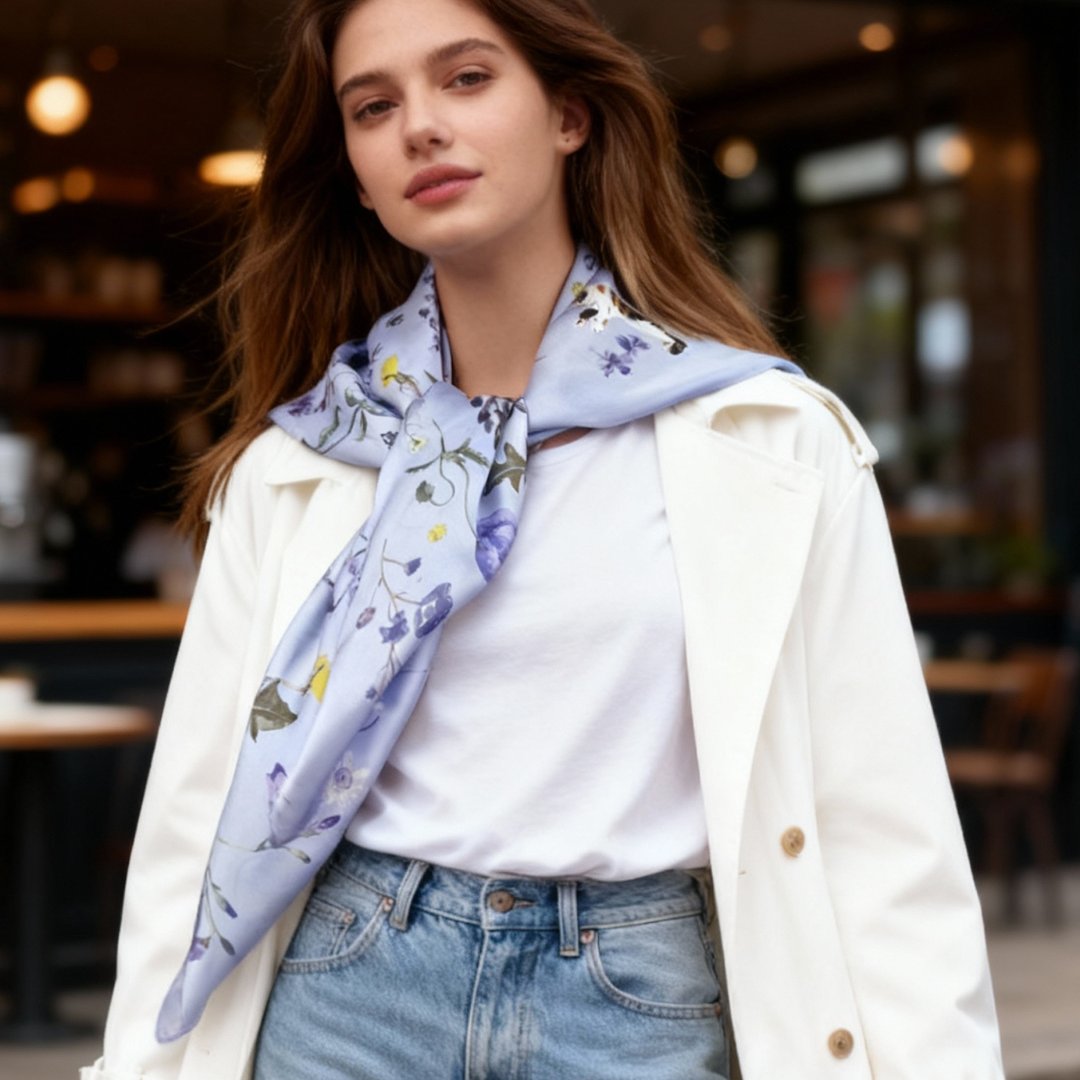 • Multi-style versatility: neck scarf, headscarf, hair tie, bag accessory