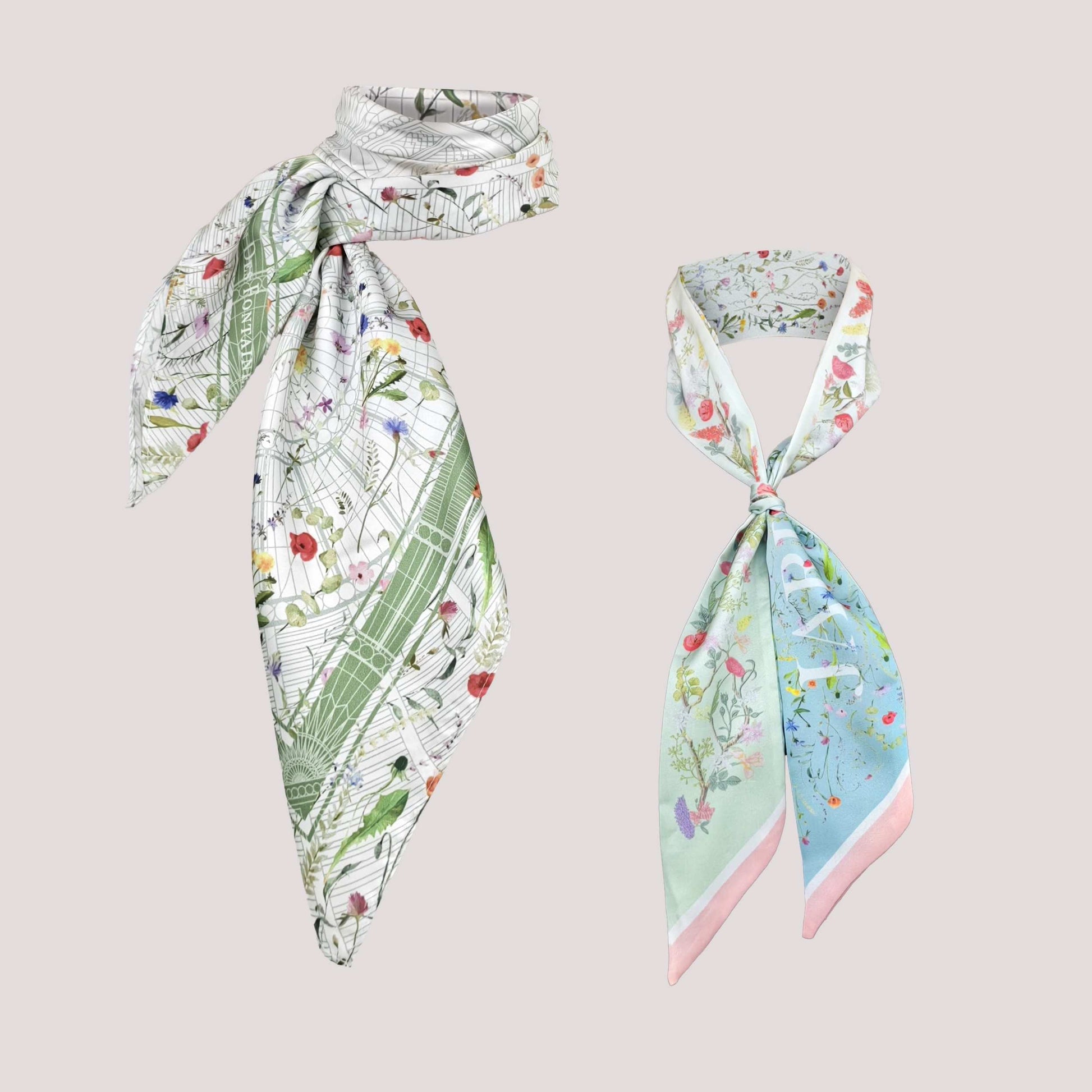• 這款絲巾由香港原創設計,靈感源自世界各地城市的文化傳承、地標建築及當地植物之美,呈現獨特時尚風格。