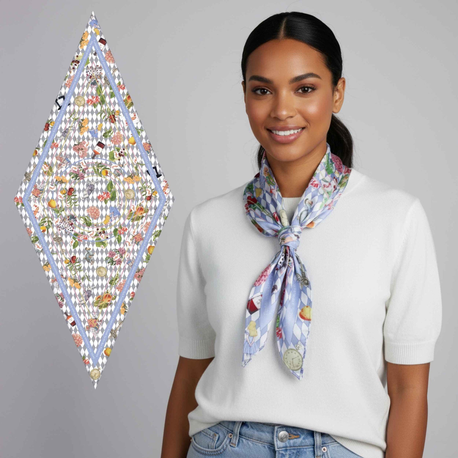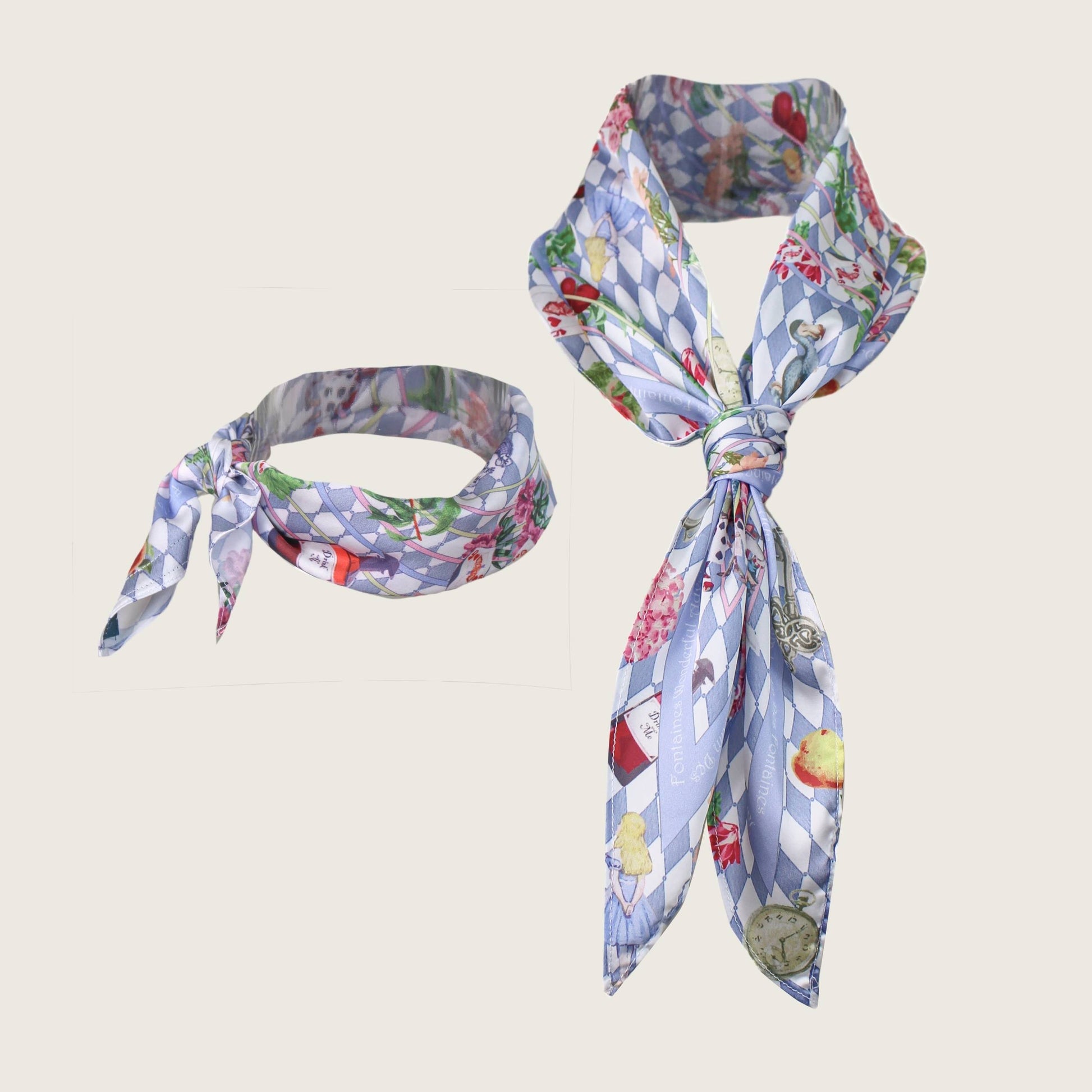 同款造型|夢幻愛麗絲藍菱格絲巾